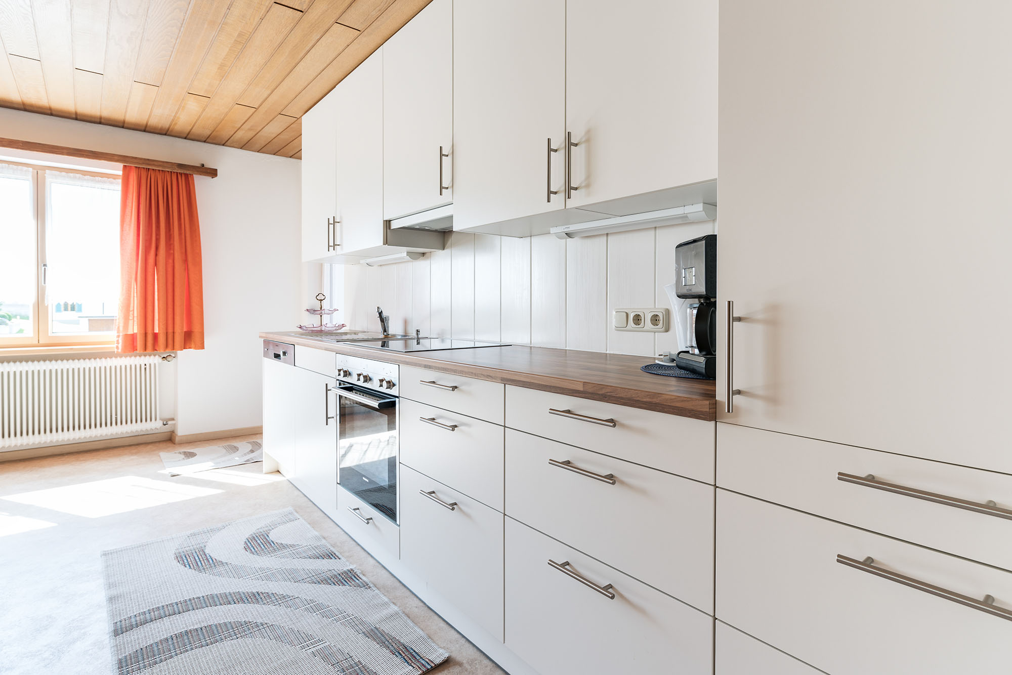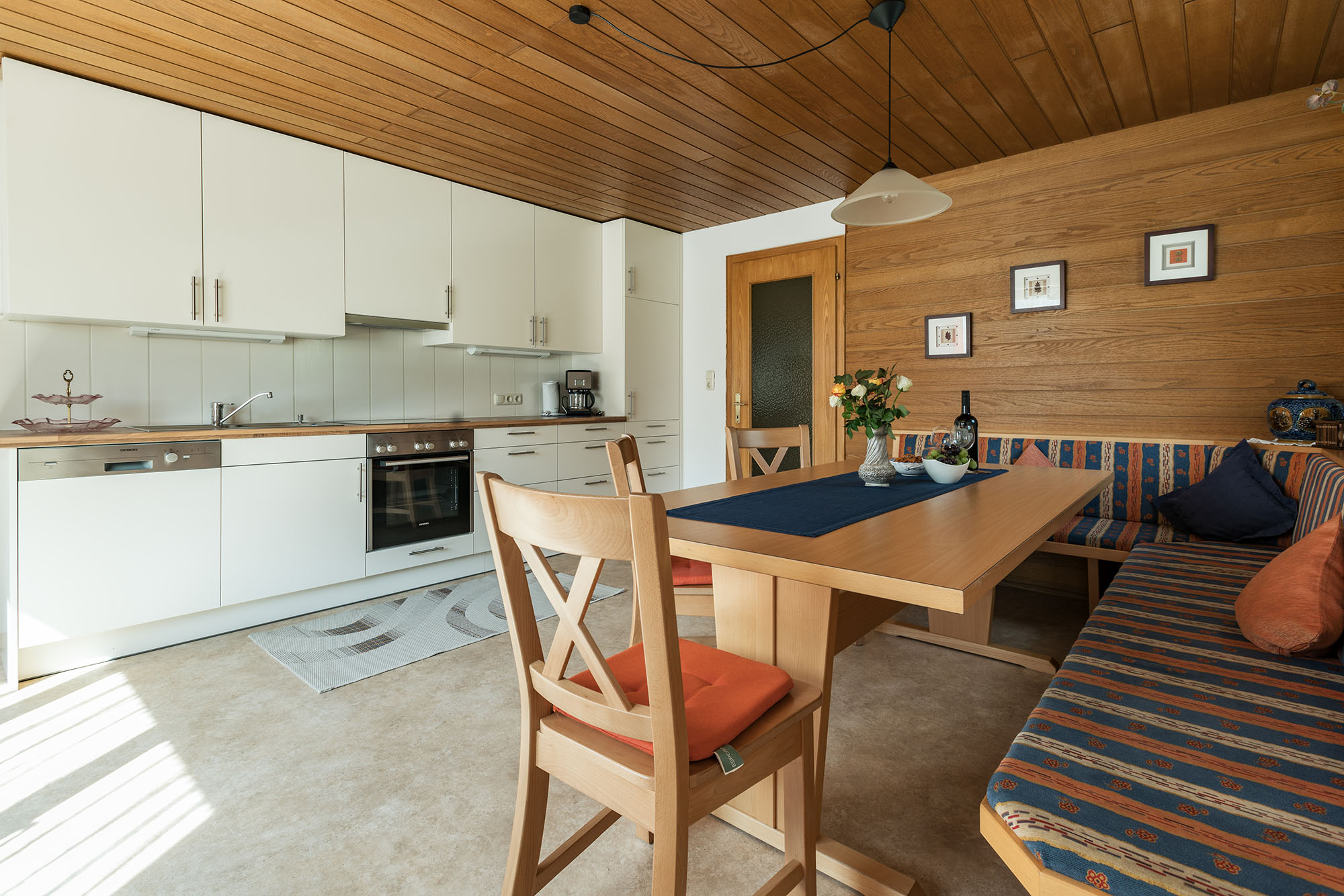 Die Küche ist ausgestattet mit Ceranfeld, Backrohr, Geschirrspülmaschine, Kühlschrank mit Gefrierfach, Kaffeemaschine (Filter), Wasser- und Eierkocher, Sat-TV. Geschirrtücher vorhanden.